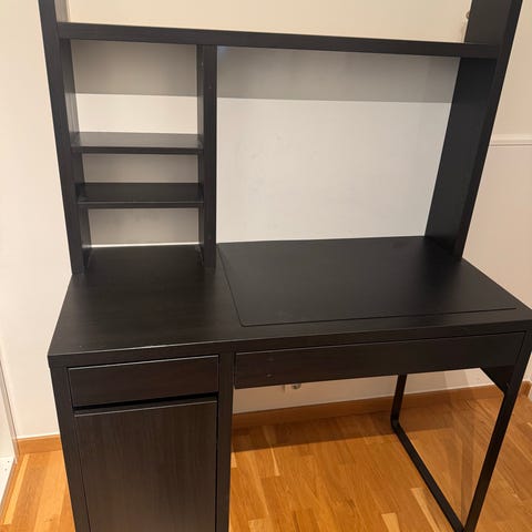 Vitt skrivbord med hyllor. Lutas mot väggen. Wille från Mio.