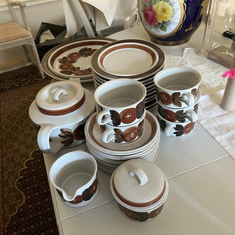 Arabia Koralli kaffemuggar + fat + sockerskål + gräddkanna – Finland fint skick