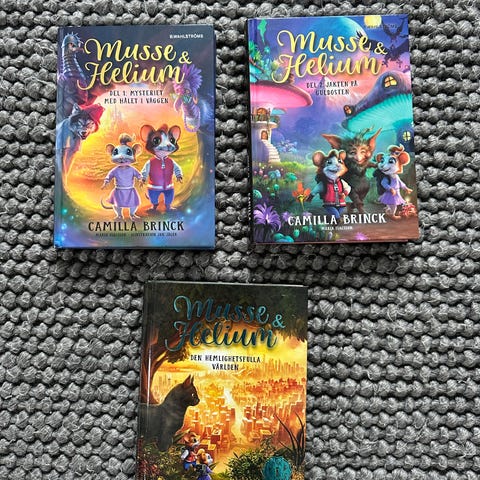 Camilla Brinck Musse & Helium I väntan på tomten bok. Illustrerad barnbok med hård pärm. Boken ingår i serien om mössen Musse och Helium och har jultema med tomte, renar och vintermiljö. Passar högläsning eller egen läsning för barn i låg- och mellanstadieåldern.
