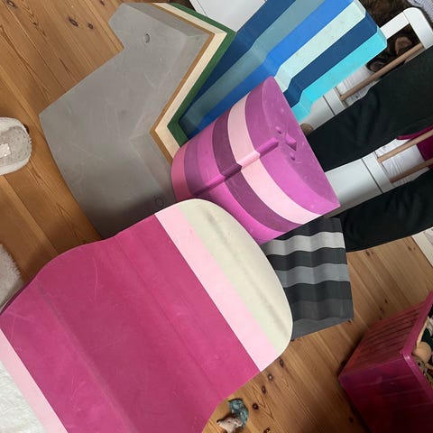 Pusselmatta i fint skick. Består av 16 rutor i fyra olika färger samt tillhörande kantbitar (se bild). Varje ruta är cirka 63*63 cm. Tjocklek 1 cm. Perfekt att ha när man har en bebis eller litet barn hemma och hårda golv. Alternativt som underlag vid träning.