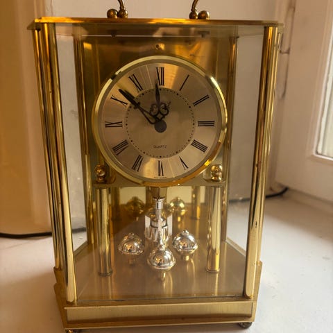 Elegant bordsur i spegelglas med dekorativa kristaller. Klockan har en klassisk urtavla med romerska siffror och blir en stilfull inredningsdetalj som passar perfekt i vardagsrum, sovrum eller hall. Den reflekterande designen ger ett lyxigt intryck och fångar ljuset på ett vackert sätt.