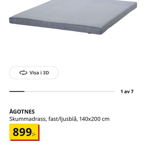 IKEA resårbottenmadrass i grått tyg. Madrassen är avsedd som bas till säng, där man kompletterar med bäddmadrass ovanpå. Passar som liggunderlag i sovrum eller gästrum beroende på mått och sängram. Tyget är slätt och omsluter hela resårbottnen. Exakta mått 90x200cm, modell Sultan.