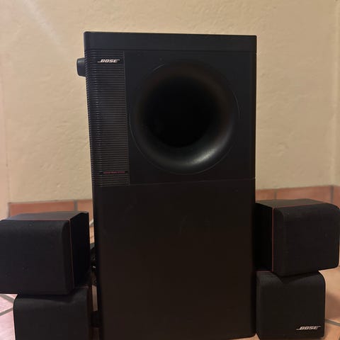 Bose hemmabio system, Bose321GSXSI, med 2 st. golv högtalare på stativ.