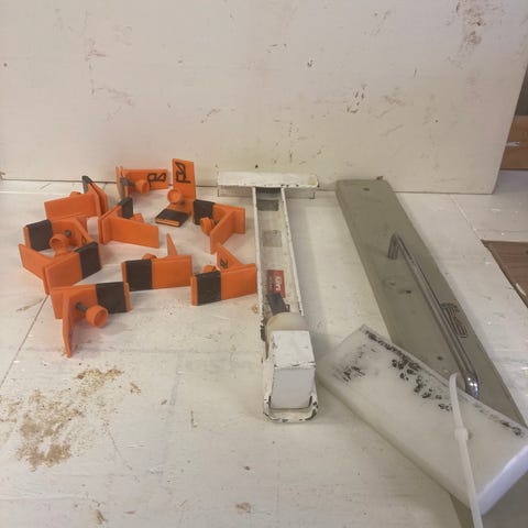 Paket med bilverktyg och elverktyg. Innehåller en hydraulisk domkraft i orange färg med tvådelat handtag, lämplig för lyft av personbil. Medföljer även en svetsmaskin med kablar och skyddsglasögon, avsedd för mindre svetsarbeten. I paketet ingår dessutom flera elverktyg i plastväskor, bland annat borrmaskin/skruvdragare och vinkelslip. Verktygen passar för olika typer av bil- och byggarbeten i garage eller hobbyverkstad.