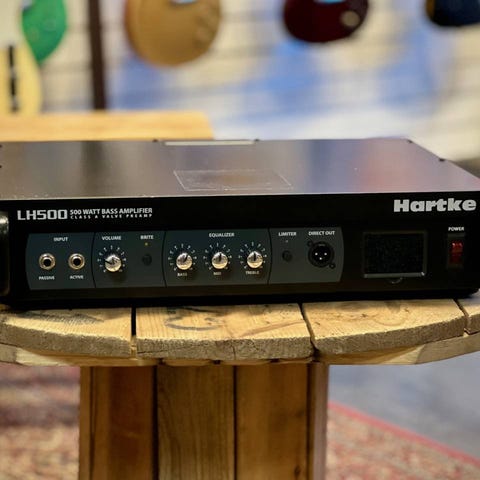 Hartke B120 basförstärkare med 120 watts uteffekt. Utrustad med två fullregister 12-tums Hartke-element, ett riktat framåt och ett nedåt. Förstärkaren har aktiv 3-bands EQ för noggrann tonkontroll samt justerbar "Shape"-krets för variation av ljudkaraktär. Separat effektloop finns för inkoppling av externa effekter. Ingången är buffrad och hanterar både aktiva och passiva mikrofoner/pickuper. Line level-utgång gör det möjligt att koppla direkt till inspelningsutrustning eller ytterligare förstärkare. Hörlursutgång finns för övning i tyst läge.