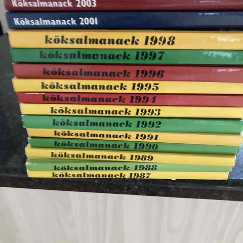 IKEA kataloger samling. Flera årsutgåvor av IKEA:s produktkataloger, staplade i kronologisk ordning. Passar för den som är intresserad av inredning, designhistoria eller vill ha referensmaterial över tidigare IKEA-sortiment.