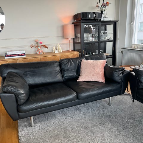 Säljer vår soffset i u form i äkta läder i nästan Ny skick.