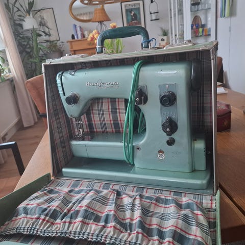 Husqvarna Automatic CL 21 E i grön classisk färg i bra skick. Jag har gjort service med rengöring, smörjning, kontroll av funktioner och provsydd.Har ny sladd med jordad kontakt och nya gummifötter .Om man syr några gånger per år, eller varje dag, så är den här maskinen för dig.Tack vare sin reduktionsväxel så klarar den grövre tyger som kapell eller jeanstyg. Levereras med alla orginaltillbehör ,pressarfötter ,nålar ,verktyg , 3 st mönster kammar A, B och C,svensk manual ( Se bilder )i praktisk transportlåda.Maskinen finns i Skråmträsk ,25 km från Skellefteå.Kan skickas med Blocket.