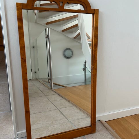 Spegel inköpt på Bukowskis, träram och blyinfattat glas. Bruksslitage. Supefin hallspegel. 121 cm x 62 cm