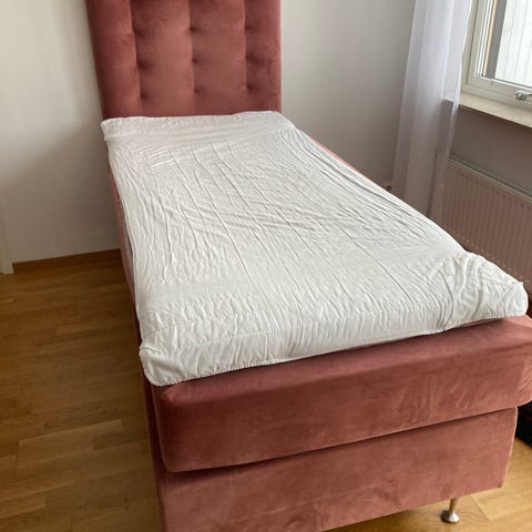Sängen är stabil, bekväm och redo att användas direkt. Har varit väl omhändertagen och passar perfekt för studentrum, gästrum eller som en smidig enkelsäng.