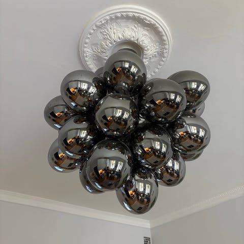Otroligt fint taklampa som vi nu behöver sälja av. I väldigt fint skick, dock saknas en av de små glaskulorna. Inget som man ens tänker på!