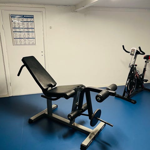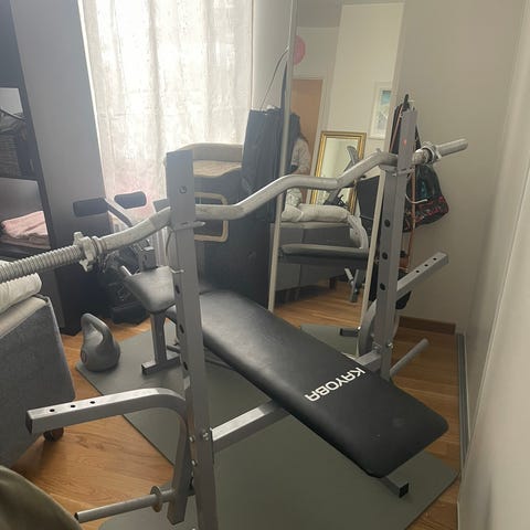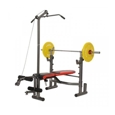 Abilica träningsbänk med skivstångsställning och predikatorbänk svart