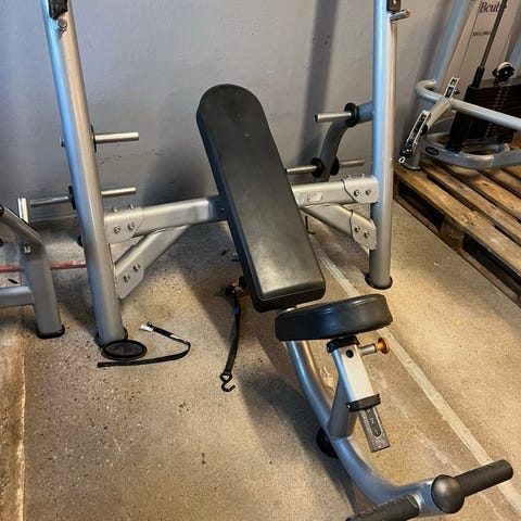Abilica träningsbänk med skivstångsställning och predikatorbänk i svart utförande. Bänken har justerbart ryggstöd för olika lutningar och separerat armstöd för bicepsövningar. Skivstångsställningen är höjdjusterbar med flera hål för anpassning av stångens läge. Utrustningen är avsedd för styrketräning i hemmet och kan användas för bland annat bänkpress, lutande press, bicepscurl och andra övningar med skivstång och viktskivor. Viktskivor och skivstång kan användas tillsammans med bänken och ställningen enligt behov.