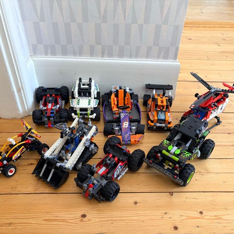 Har viss solbleknad på bakre delen och kontrollen. Tre bitar är bytta mot andra som gör samma funktion. Funkar annars perfekt. Kommer med instruktions bok. Kan skicka video om det önskas!