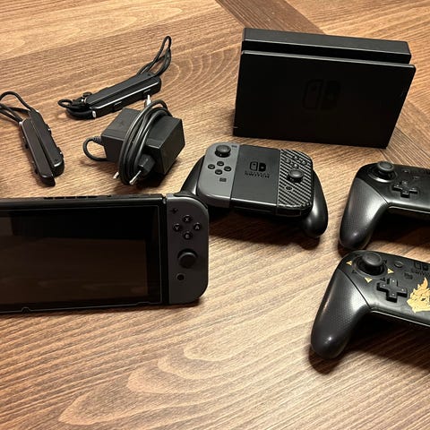 Allt som du ser på bilderna ingår. Komplett allt med originalkartong för att komma igång + en nintendo switch pro controller