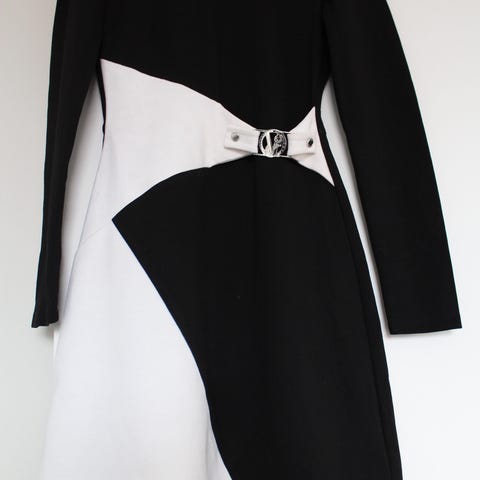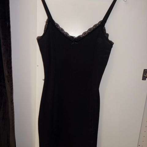 Ellos vardagsklänning för dam i storlek M. Klänningen är svart och tillverkad i polyester. Modellen har långa ärmar samt kontrasterande vita detaljer vid krage och ärmslut. Passar som vardagsklänning eller enkel klänning till arbete och fritid.