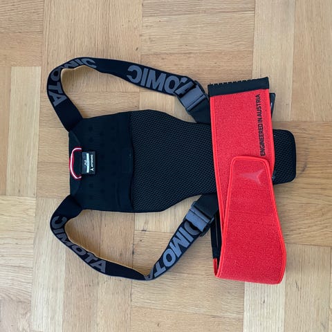Atomic ryggskydd för juniorer med justerbara elastiska axelband och midjebälte med kardborrestängning.