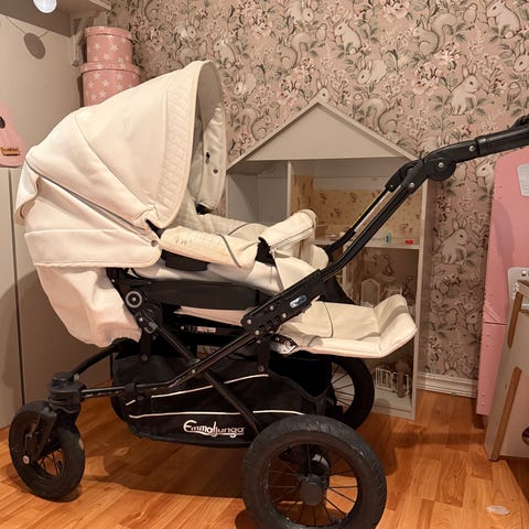 Emmaljunga nxt 60 chassi samt en nxt90 liggdel. Det finns slitage på chassit men inget som påverkar användningen. På handtaget är det lite skavt.