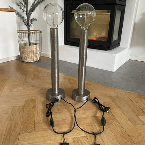 3st PR Home bordslampor råsilver. Svart klädd sladd.