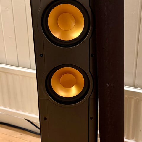 Fina lättdrivna Klipsch-högtalare, otroligt rent och klart ljud, bra tryck och en "rakt-på-känsla", mycket tack vare horndiskanterna. De har stått i ett par år då jag bytt till mindre väggmonterade högtalare.