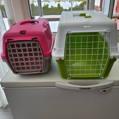Transportbur för katt eller liten hund plast röd vit
