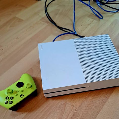 Xbox One S vit med handkontroll och extern hårddisk