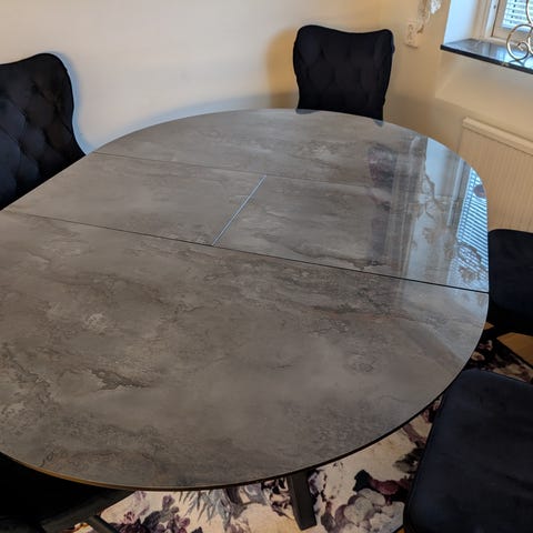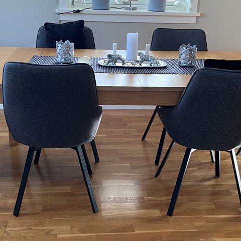 Fint matbord med sex stolar i massiv ek.