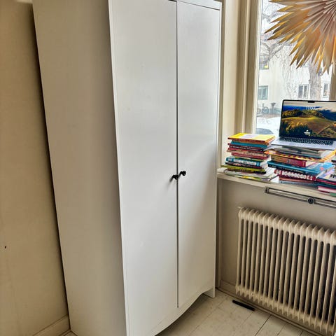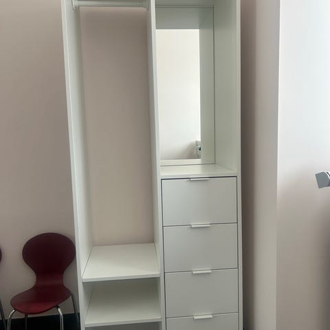 Ok skick, men lite vinglig, går säkert att dra åt skruvarna, men har inte testat det själv. Har funkat utmärkt som hallförvaring för våra barn.