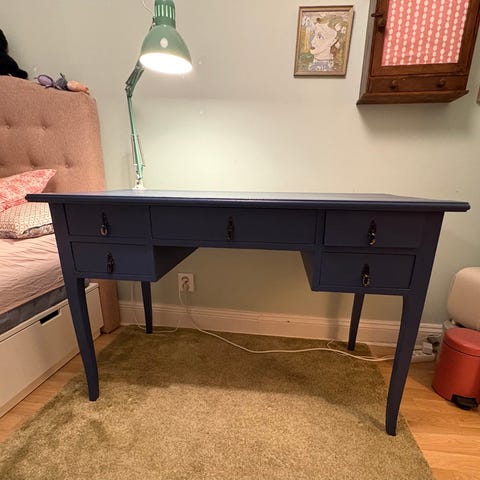 läder inläggning, förgylld dekor, tre lådor i sarg, höjd 77, 120x60 cm.
