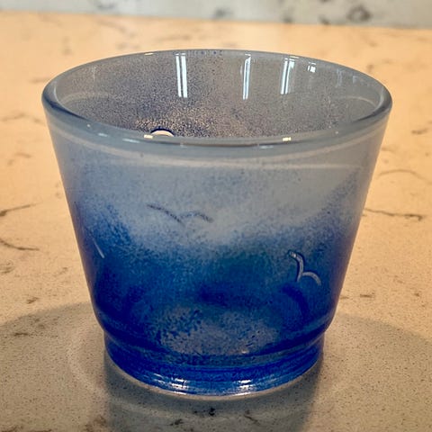 Glasprydnader rosformade och lila kubformad ljuslykta
