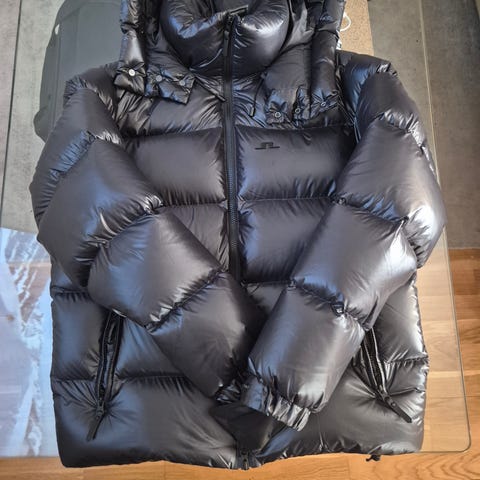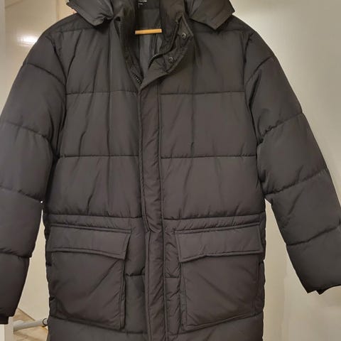 En rejäl och varm vinterjacka med gott om fickor samt avtagbar huva. Möjlighet att tajta åt midjan. Vattenmotståndig. Stilren utan några märkningar. Aldrig använd och i nyskick. Storlek M.