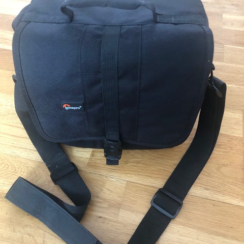 Säljer min kameraväska då den inte används längre. Väskan är i fint skick med alla spännen och dragkedjor intakta. Mellanväggar med kardborreband får man med.