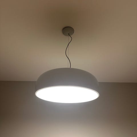 Full pendellampa med ogenomskinlig skärm En stor, halvcirkelformad skärm är det centrala i pendellampan. Lampan är ansluten till baldakinen i samma färg med tre tunna kablar. Skärmens insida är vit och metallhöljet låter ljuset endast stråla nedåt. Denna pendelarmatur är särskilt lämplig för att belysa mat- och köksbord och kan även användas för allmän belysning. Denna perfekt formade, enkla skönhet designades av Dante Donegani & Giovanni Lauda 2014. De båda formgivarna inspirerar med sina många Made in Italy-skapelser, som även väcker allt större entusiasm i Europa.