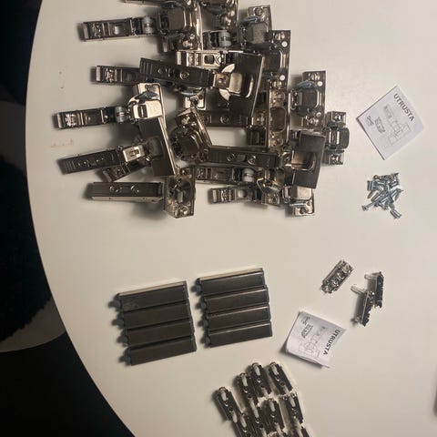 Levereras i större mängd enligt bild, lämpliga för exempelvis köksskåp, skåpluckor eller andra möbler där denna typ av gångjärn passar i mått och utförande.