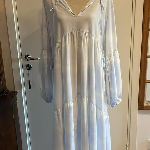 Storlek 44. Hel längd ca 57cm, bredd i midja ca 42cm, bredd över stuss ca 59cm. 50% polyester 50% viscose.