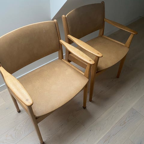 Fyra fina karmstolar från Gemla designade av Yngve Ekström. Modell kallad puck.