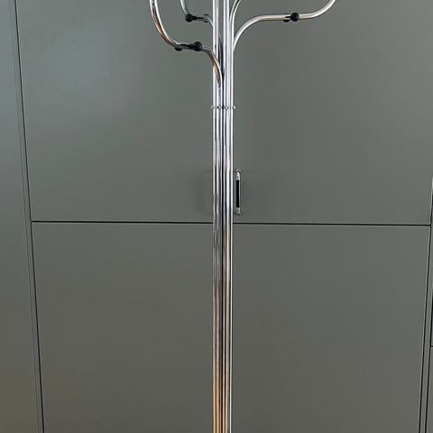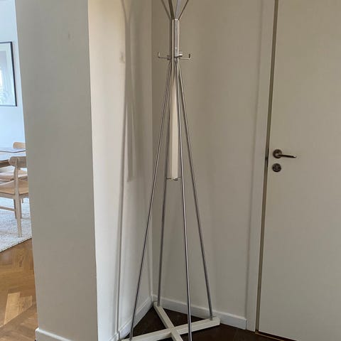 Stående klädhängare i gott skick. Något litet slitagemärke finns, men inget som sticker ut. Ca 182 cm hög. Hämtas på plats men kan komma överens om transport inom närområdet.