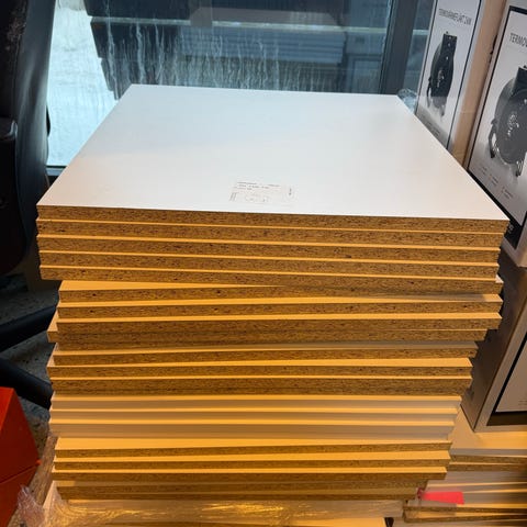 Två uppsättningar hyllplan av oljad ek i fint skick säljes: