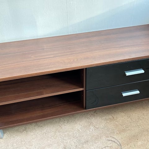 Vit högblank TV-bänk; 180x 45x38 cm.