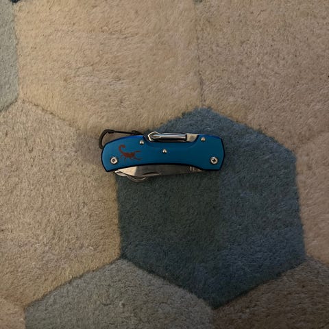 Multiverktyg med tång, knivblad, sax och flera mindre verktyg i metall. Fällbar konstruktion där alla verktyg viks in i handtagen. Utrustad med ögla för eventuell upphängning eller fäste i nyckelring eller liknande. Passar för enklare reparationer, hobbybruk och vardagliga uppgifter där flera grundläggande verktyg behövs i kompakt format.