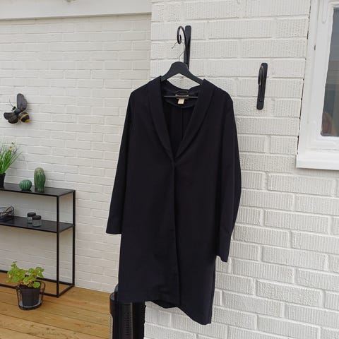 Svart kappa med knytskärp. Knappar i metall vid ärmslut. Använd, men i gott skick. Storlek 40.