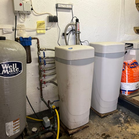 Enviro Filter A-7 avsyrningsfilter för uppströmsinstallation. Filtret är avsett för vattenbehandling och levereras i blå behållare. Enligt etiketten är produkten tillverkad av Aqua Invent och märkt som kompositbehållare med PE-innerhölje från PWG (Pollet Water Group). Lämpligt för användning i system där avsyrning av vatten krävs, exempelvis i hushålls- eller mindre industrimiljöer där vattnets pH-värde behöver justeras.