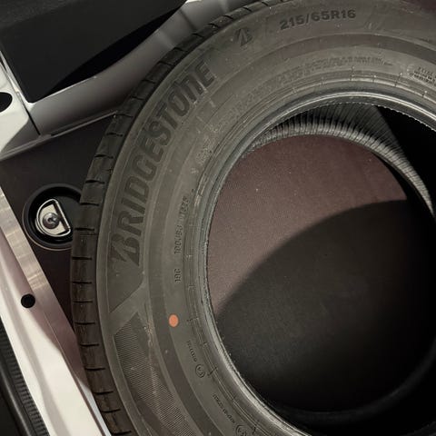 Däcken är monterade samtidigt 2025 och alla har 5mm kvar i mönsterdjup. 2st av däcken har märkningen DOT2523, och de andra 2 har DOT1024.