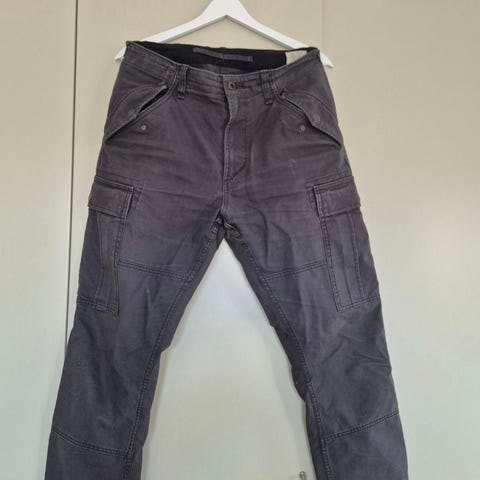 Svarta snowboardbyxor / skidbyxor i denimtyg, i märket SOS (Sportswear of Sweden). Storleken är 52 / L, och jag är 185 cm lång.