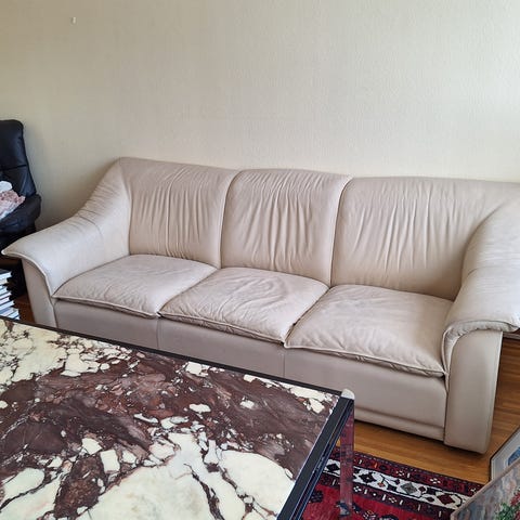 2-sits skinnsoffa modell Apollo Carmen 6041 från Finska Skinnmöbler i Barkarby. Hela soffan i skinnkvalitet fullanilin. Fint skick men lite solblekt. Bredd 1,55 meter, djup 1,0 höjd 0,9. Från rök- och djurfritt hem.