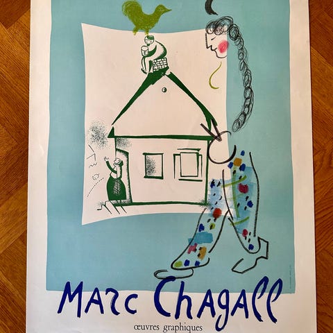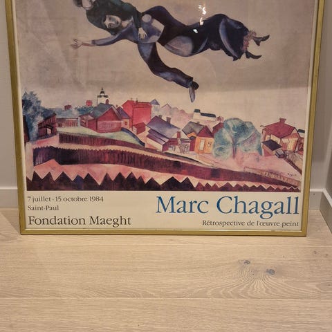 Marc Chagall affisch med motiv i färg, inramad i rektangulär ram.
