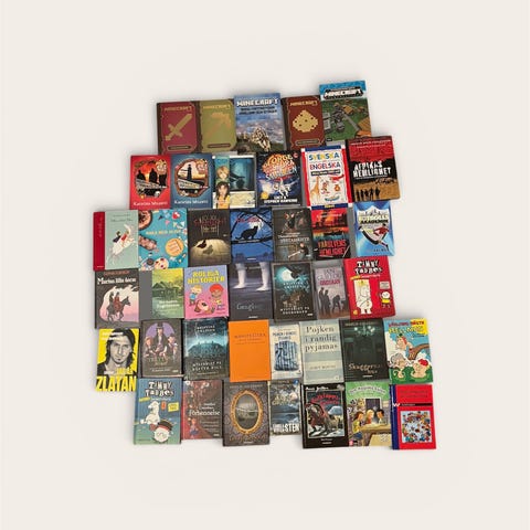 Övrigt: Faktaböcker (t.ex. Min första engelska ordbok) och humor.