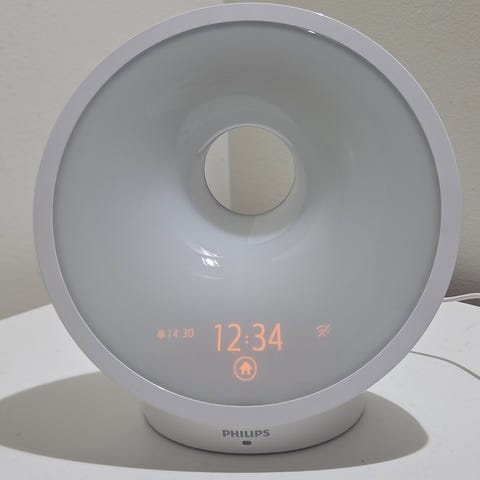 Uppvakningslampa från Philips som gradvis ökar ljuset och väcker dig på ett naturligt sätt med fågelkvitter.