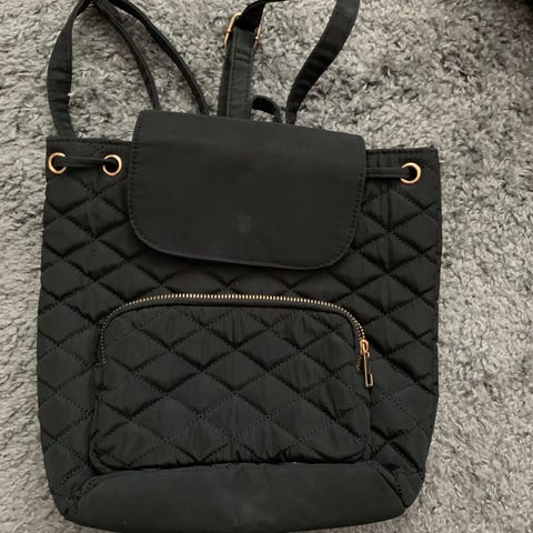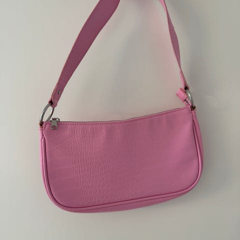 H&M axelremsväska för kvinna i lila fuskläder. Väskan har en kort axelrem och stängs med dragkedja upptill. Modellen är kompakt och lämpar sig för mindre tillhörigheter som plånbok, nycklar och mobiltelefon. Ytan är slät med lätt glansig finish. Väskan har använts ett antal gånger och är lite smutsigt inuti och dragkedjan är även lite lite långsam, därför säljer jag den för ganska lågt pris.