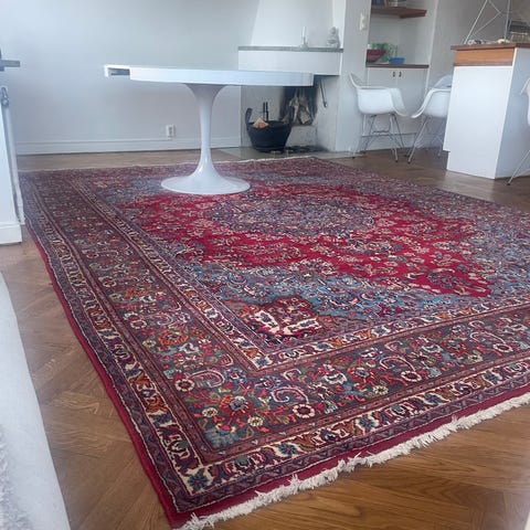 Skulle du vilja ha mattan tvättad eller ha skinnförstärkta sidor? Jag känner en av de bästa i landet. Meddela mig om det är av intresse.